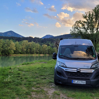 Abends finden wir einen tollen Stellplatz im Süden von Österreich an der Drau bei Villach. Zufrieden und voller Vorfreude auf 3 1/2 Wochen Urlaub genießen wir den ersten Abend.